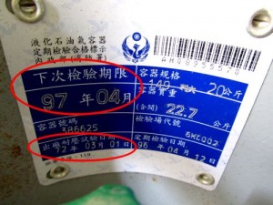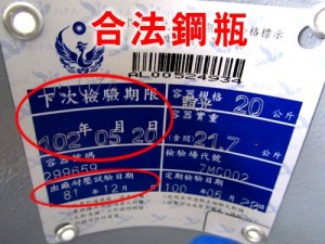 其實每支瓦斯桶(瓦斯鋼瓶)都必須要附檢驗日期,上面會有合格檢驗日期與最初檢驗日期,以確保瓦斯鋼瓶的安全性,提醒消費者注意,並定期更送檢或更換鋼瓶,以保障瓦斯使用之安全。
