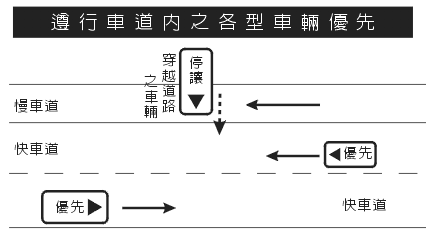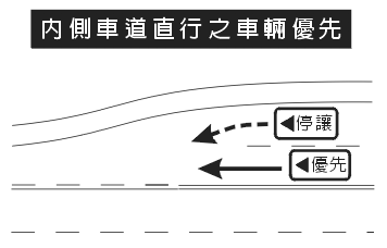 同向有二以上之車道者,左側車道為內側車道,右側車道為外側車道。 |
