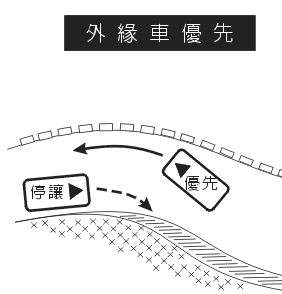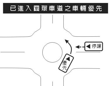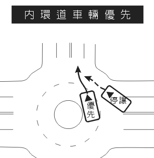 九 行經多車道之圓環,應讓內側車道之車輛先行。 |