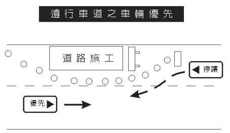 三、由同向二車道進入一車道,應讓直行車道之車輛先行,無直行車道者,外車道之車輛應讓內車道之車輛先行。但在交通壅塞時,內、外側車道車輛應互為禮讓,逐車交互輪流行駛,並保持安全距離及間隔。 |